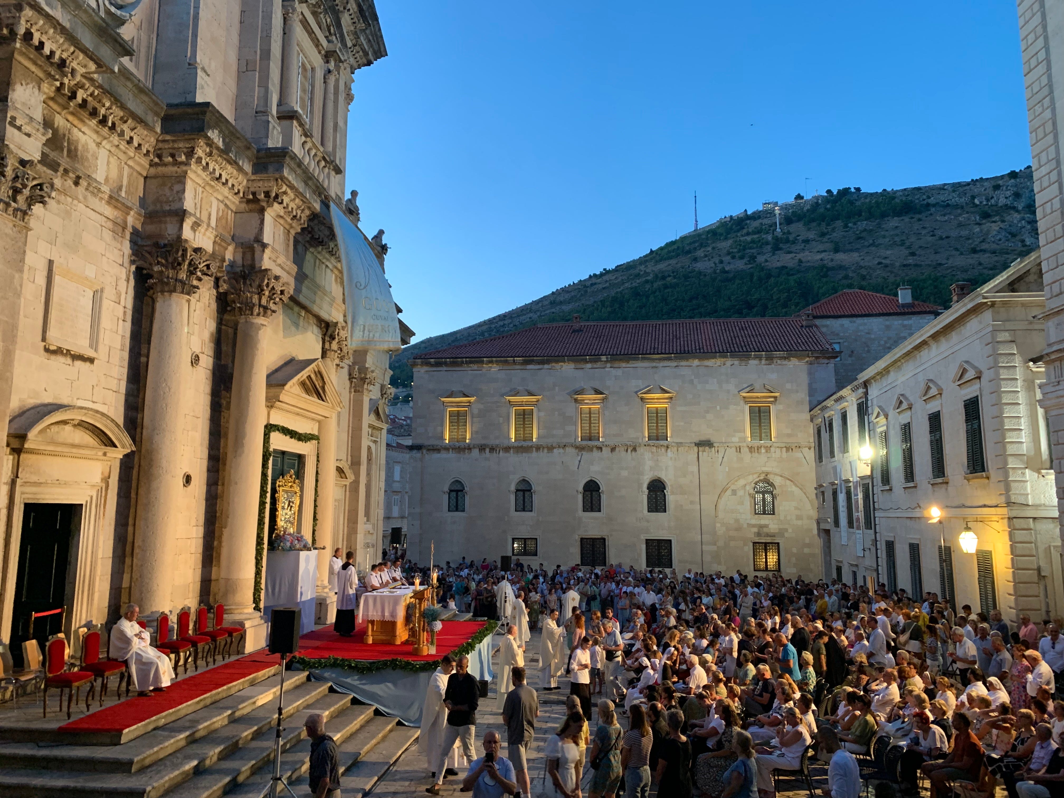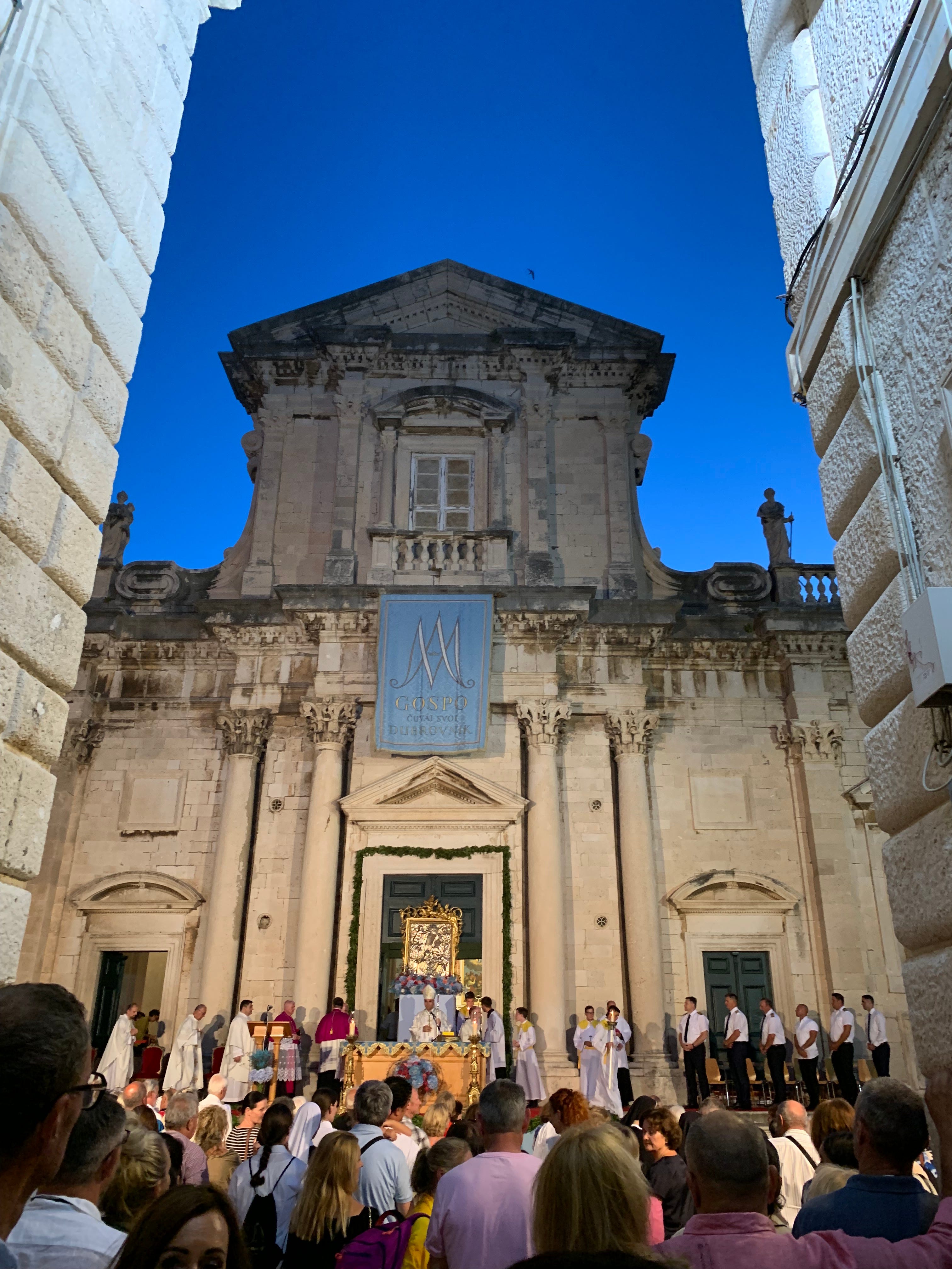 We arrived on 15 August, a Croatian national holiday for the Assumption of the Virgin Mary. Wandering through the old streets, we heard a choir and stumbled upon the incredible sight of an outdoor mass with locals queuing up to take Communion.