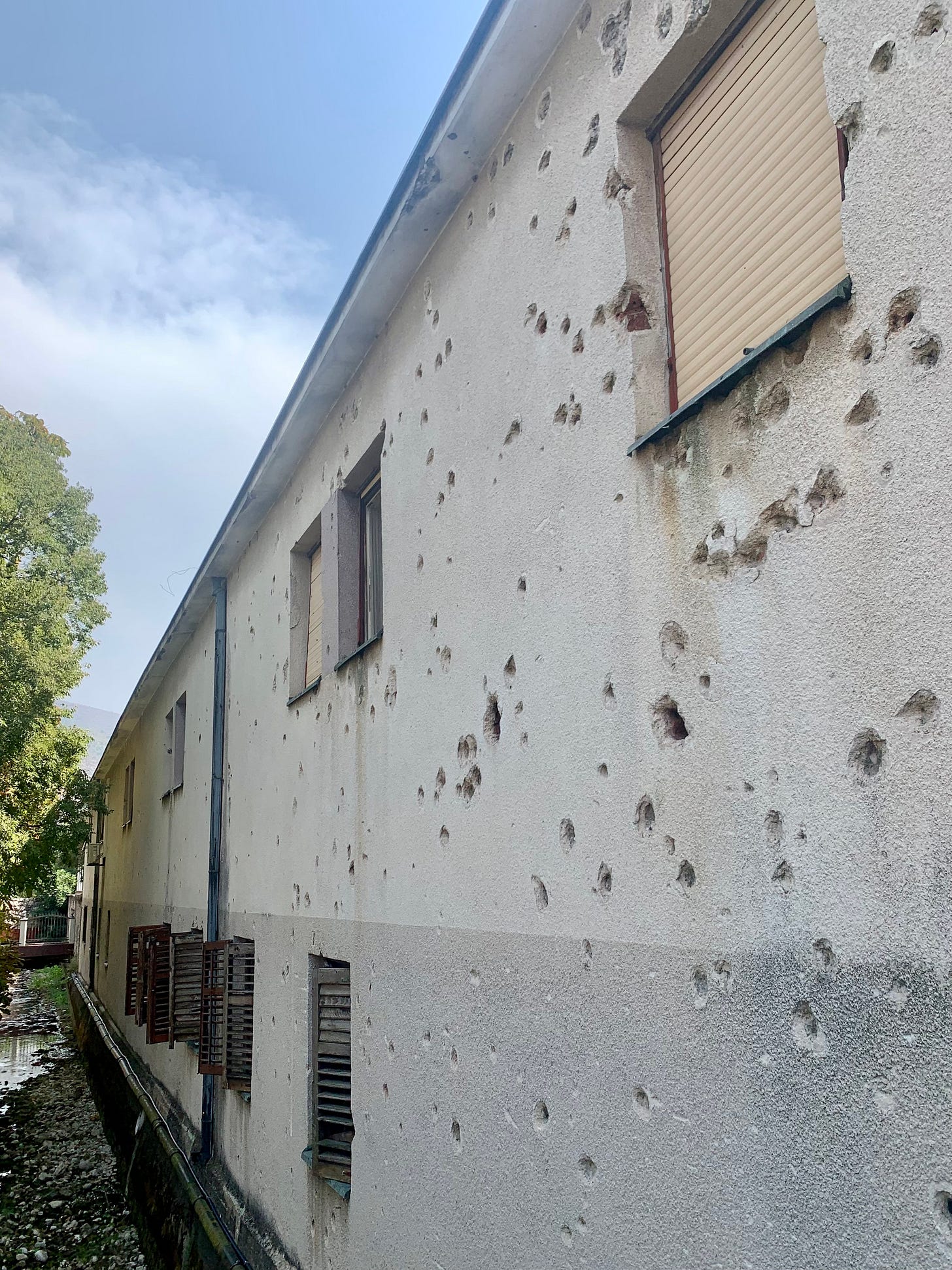 Mostar’s narrow cobbled streets and the famous Ottoman bridge have been completely restored, but surrounding the tiny historic quarter are still the pockmarks of shelling on public buildings and the stained concrete on what looks like dilapidated low-rise 1970s social housing.